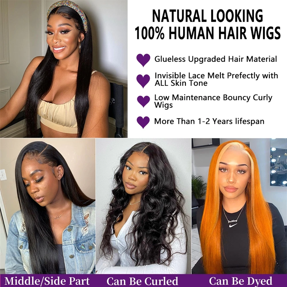 13x6 Hd Transparent Swiss Lace Bone Straight 200 Density Frontal Human Hair Wigs Brazilian Virgin Hair Lace Front Wig For Women
